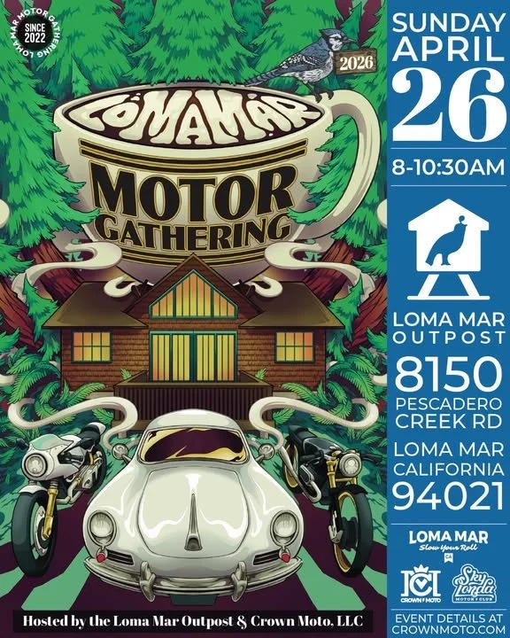 Motor enthusiasts join us for the monthly Loma Mar Motor Gathering. Pastries, breakfast sandwiches and coffee served outside, starting at 8 a.m.