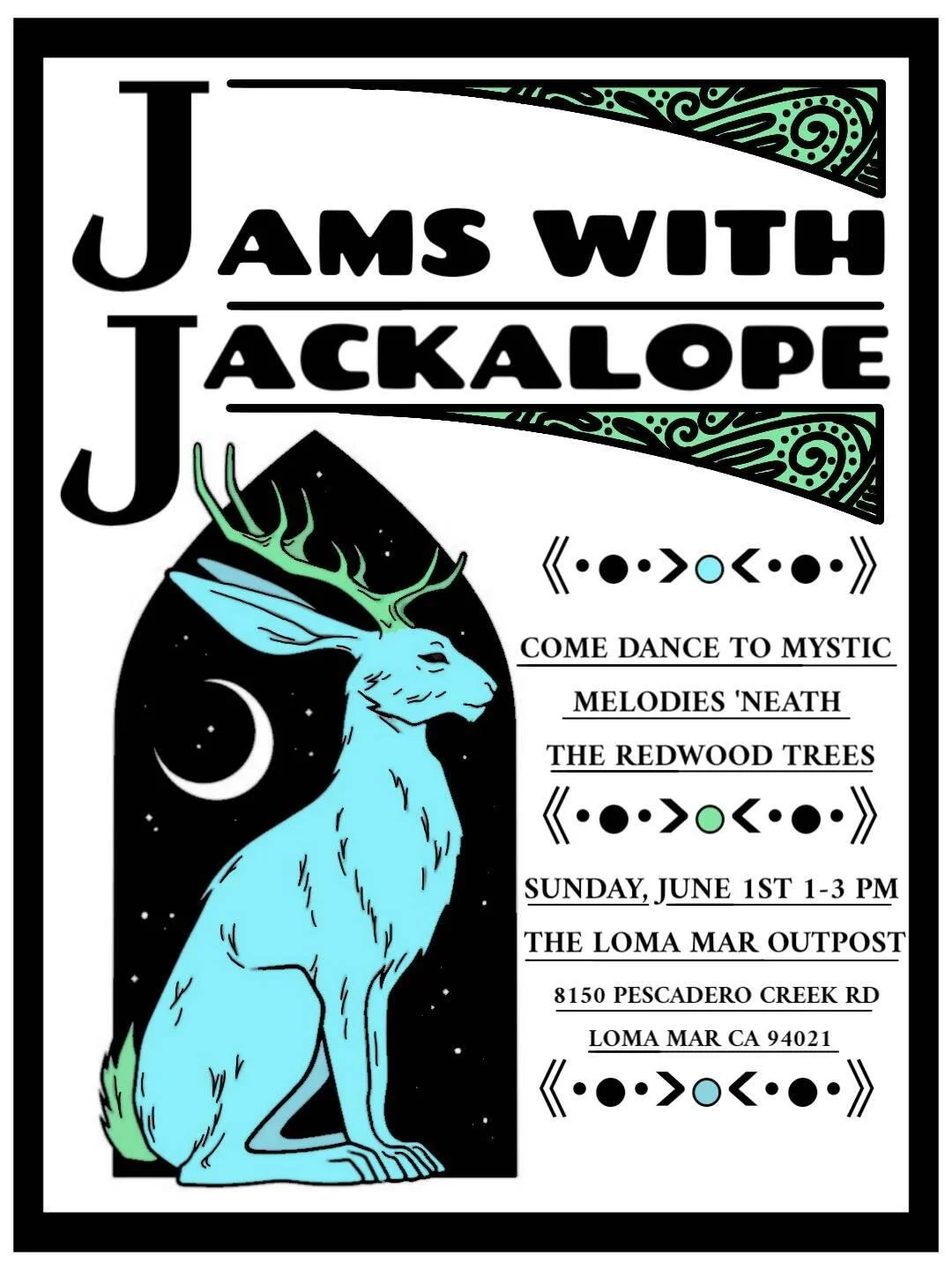 MUSIC: Jams With Jackalope on the Outdoor Stage at the Outpost Sunday, June 1, 2025 1:00 PM 3:00 PM Loma Mar Outpost 8150 Pescadero Creek Road Loma Mar, CA, 94021 United States (map) Google Calendar ICS The lively, local Ziggy Bates aka Jams With Jackalope brings some mystic melodies to the Outpost’s outdoor stage for a danceable, delightful afternoon set.