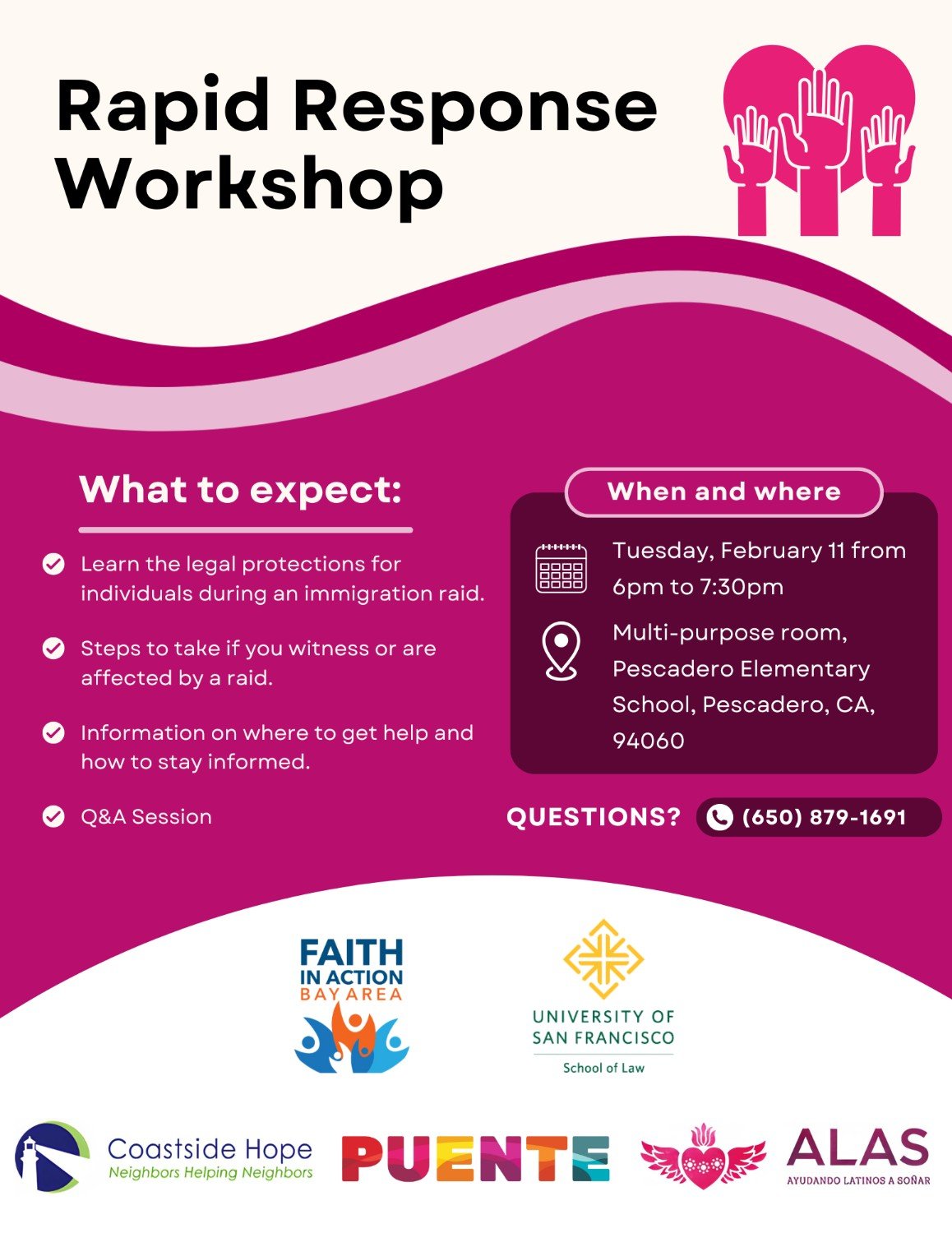 In this workshop, you will learn the legal protections for individuals during an immigration raid, the steps to take if you witness or are affected by a raid, and information on where to get help and how to stay informed. For questions or more details, call (650) 879-1691.